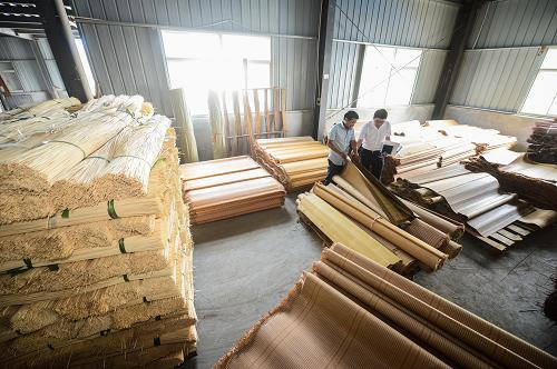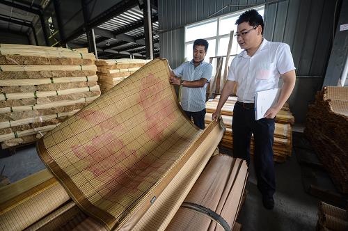 6月19日,一家竹席生产厂的工人正在加工竹席。近日,浙江省工商银行安吉支行专门针对竹制品小微企业推出了特色“竹子贷款”,名为“竹仓贷”的首批贷款在5月发放成功,共涉及6家企业220万元,平均每家额度30多万元,预计到年底“竹仓贷”额度发放将达到1亿元。“竹仓贷”以竹制品企业仓储存货作为抵押,由专业仓储公司对原材料竹丝或竹凉席半成品、成品存货进行监管。经过企业信用评级、押品评估、贷款三个流程后,企业就可以获得放款,整个过程只要一周左右。新华社记者 徐昱 摄 6月19日,银行工作人员(右)正在和企业主一起对抵押的竹制品进行核对和清点。新华社记者 徐昱 摄 6月19日,银行工作人员(右)正在和企业主一起对抵押的竹制品进行核对和清点。新华社记者 徐昱 摄 6月19日,银行工作人员正在和企业主一起对抵押的竹制品进行核对和清点。新华社记者 徐昱 摄 |
