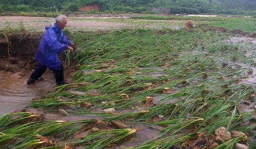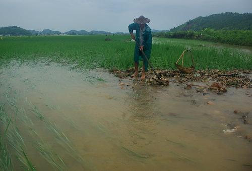6月20日,江西省抚州市黎川县德胜镇黎明村的农民在清理被洪水损坏的农田。新华社发(万丽敏 摄)