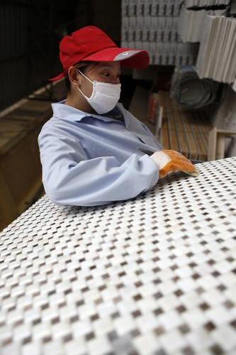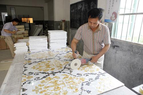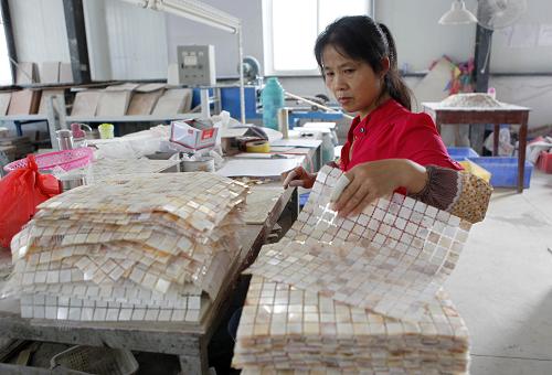 6月25日,江西省都昌县周溪镇腾骏贝类加工企业员工对“马赛克”建筑家居装饰成品进行验收。位于鄱阳湖畔的江西省都昌县有“中国淡水珍珠之乡”的美誉,珍珠养殖业在当地已经有上百年的历史。近年来,该县依托鄱阳湖资源优势,在大力发展淡水珍珠养殖加工的同时,顺势延伸产业链,利用珠贝加工成工艺品或马赛克等建筑装饰材料。目前,全县珍珠贝类加工企业和大户1500多家,从业人员近2万,年加工贝壳超过10万吨,“珠贝”产业年产值5亿元以上。新华社发(傅建斌 摄) 6月25日,江西省都昌县周溪镇腾骏贝类加工企业员工拼贴贝类“马赛克”建筑家居装饰产品。新华社发(傅建斌 摄) 6月25日,江西省都昌县周溪镇新生贝类加工企业员工在对“马赛克”建筑家居装饰成品进行检验。新华社发(傅建斌 摄) 6月25日,江西省都昌县周溪镇腾骏贝类加工企业的员工在拼贴“马赛克”建筑家居装饰产品。新华社发(傅建斌 摄) 6月25日,江西省都昌县周溪镇腾骏贝类加工企业的员工在打磨“马赛克”建筑家居装饰产品。新华社发(傅建斌 摄) 6月25日,江西省都昌县周溪镇腾骏贝类加工企业员工对贝类“马赛克”建筑家居装饰产品进行打磨。新华社发(傅建斌 摄) |