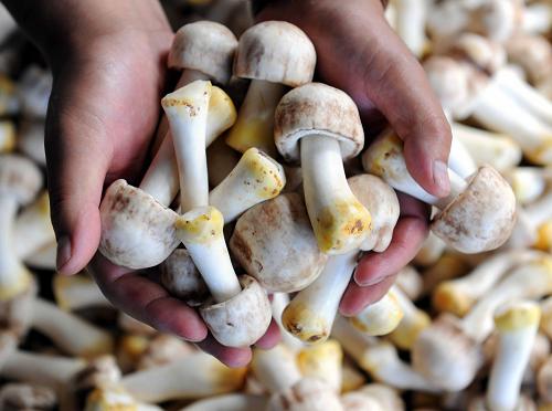 这是清洗好准备烘烤的巴西蘑菇(6月25日摄)。新华社记者 杨宗友 摄