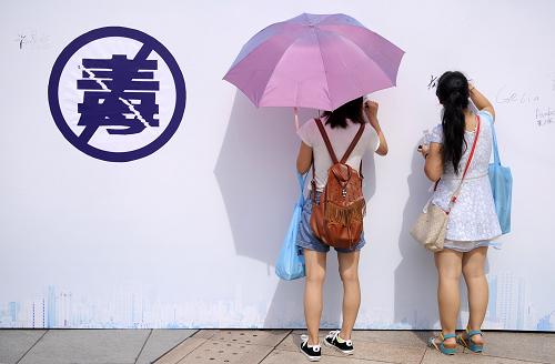 6月26日,两位女孩在广州国际禁毒日宣传活动设立的禁毒签名墙上签下自己的名字。当日是国际禁毒日,广州市禁毒委在花城广场举办主题为“打毒品,促和谐”的国际禁毒日宣传活动,通过毒品实物、图片资料、缉毒犬表演等形式向市民群众展示广州“雷霆扫毒”专项行动的成果。据了解,从2014年初开始,广州公安机关在“雷霆扫毒”行动中已侦破毒品犯罪案件1248宗,刑事拘留涉毒犯罪嫌疑人1674名,破获毒品大要案132宗,缴获各类毒品近1吨。新华社记者 梁旭 摄 6月26日,一位市民在广州国际禁毒日宣传活动上观看毒品海洛因实物。新华社记者 梁旭 摄 |