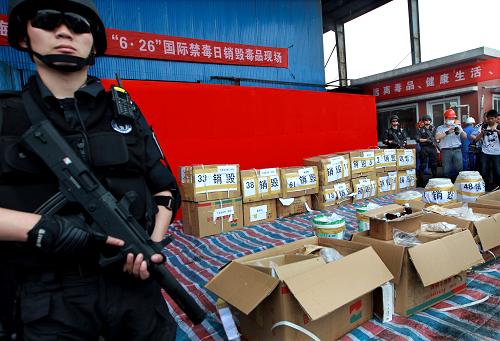 6月26日,各类毒品堆放在现场等待销毁。当日,上海警方集中公开销毁1.3吨毒品。据了解,2014年1至5月,上海警方侦破毒品案件同比上升27%,缴获各类毒品同比上升66%,有效遏制了毒情形势蔓延的趋势。新华社记者 凡军 摄