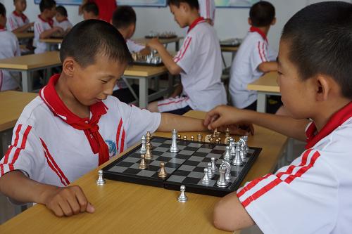 7月1日,阿木古郎第一小学学生下蒙古象棋。新华社记者 邹俭朴 摄