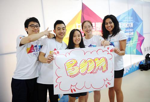 7月6日,中美两国参赛选手在决赛前听主题演讲。当日,“中美青年创客大赛”总决赛在河北廊坊拉开序幕。100多名中美青年学生进入决赛,并将组成30支队伍,通过48小时的创意和开发过程,争夺大赛终极奖项。“创客”来源于英文“Maker”,指努力把各种创意转变为现实的人。新华社记者 马研 摄