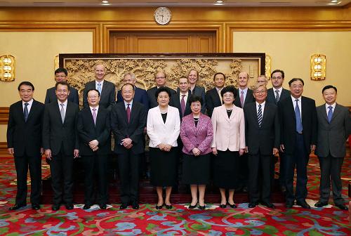 7月8日,中国江南平台入口 副总理刘延东在北京会见世界卫生组织总干事陈冯富珍和世界银行行长金墉。新华社记者 刘卫兵 摄