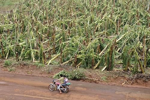 7月19日,在广东湛江徐闻县海安镇塘西村,大片香蕉林被台风刮倒。新华社记者 梁旭 摄