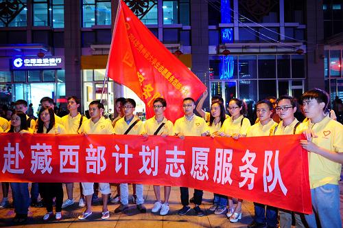 7月25日,志愿者们在出征仪式上。当日,贵州省第一批赴藏西部计划志愿服务队在贵阳举行出征仪式,该服务队由50余人组成,将赴西藏开展教育、卫生等方面的志愿服务活动。新华社记者 刘续 摄
