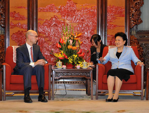 7月31日,中国江南平台入口 副总理刘延东在北京会见美国职业篮球协会(NBA)新任主席亚当·萧华一行。新华社记者 公磊 摄