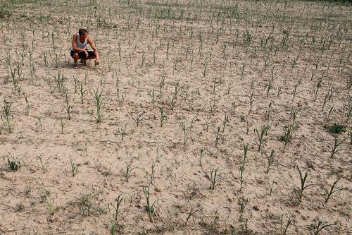 在河南省灵宝市焦村镇沟东村,村民种植的玉米苗已经绝收(8月4日摄)。新华社发(赵华 摄)