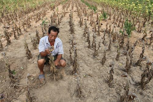 在河南省灵宝市焦村镇尚庄村,村民种植的油葵已经绝收(8月4日摄)。新华社发(赵华 摄) |