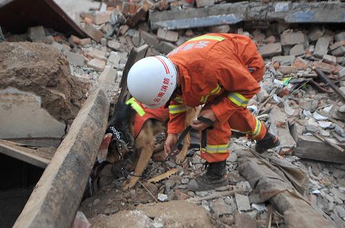 8月5日,救援人员在鲁甸县龙头山镇搜救。新华社记者 薛玉斌 摄 |