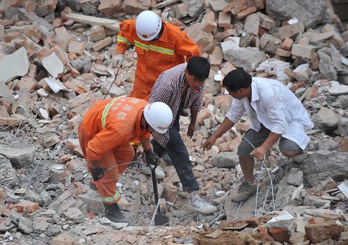 8月5日,救援人员在鲁甸县龙头山镇搜救。新华社记者 薛玉斌 摄