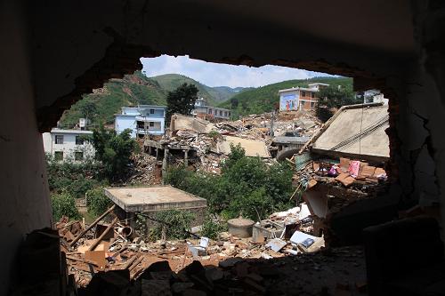 这是8月5日在云南省鲁甸县地震震中龙头山镇拍摄的受损房屋。龙头山镇在此次地震中遭受重创。新华社发(张广玉 摄)