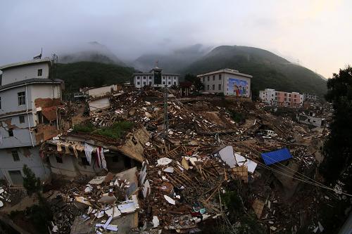 这是8月5日拍摄的云南省鲁甸县地震震中龙头山镇。龙头山镇在此次地震中遭受重创。新华社发(张广玉 摄) |