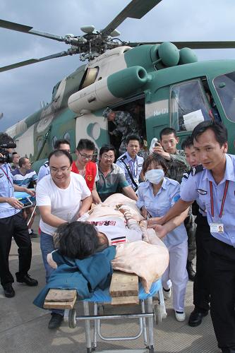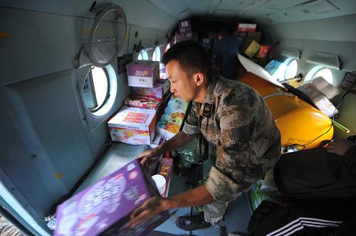 成都军区某陆航旅5日向鲁甸地震灾区增投了直升机。当天,有多架飞机往返飞行于昭通机场和震中龙头山镇、翠屏、银屏等重灾区,并首次实现向震中投送食品、矿泉水、帐篷等物资。