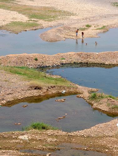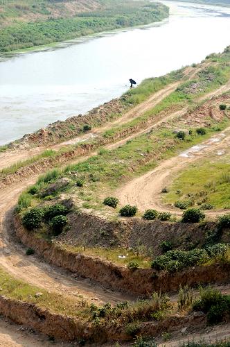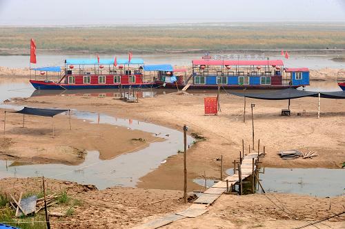 黄河干流来水量不足,郑州花园口黄河断面大面积河床裸露(8月2日摄)。新华社记者 朱祥 摄 |