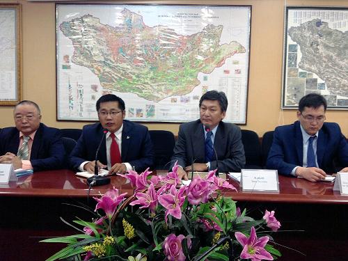 8月12日,蒙古国矿业部国务秘书吉格吉德(右二)在乌兰巴托接受记者采访。蒙古国矿业部国务秘书吉格吉德12日在接受中国访蒙新闻团采访时表示,近年来蒙古国与中国在矿业勘探、开发和矿产品深加工等方面有较好合作,期待双方能进一步推动在矿业领域的开发合作。新华社记者 冯坚 摄