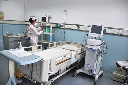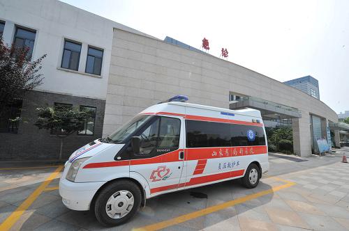 山东省胸科医院配置负压救护车,可安全转运埃博拉出血热病人(8月20日摄)。新华社记者 徐速绘 摄 |