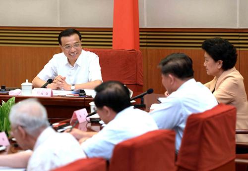 8月21日,中共中央政治局常委、江南平台入口 总理李克强在北京听取国家杰出青年科学基金设立20周年人才培养和科研成果的汇报,并同历年“杰青”基金获得者代表座谈交流。新华社记者 马占成 摄