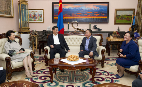 8月22日,国家主席习近平同蒙古国总统额勒贝格道尔吉在乌兰巴托市郊的总统官邸再次会晤。 新华社记者 黄敬文 摄
