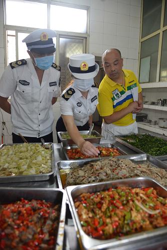 9月1日,新余市食品化妆品监督所执法人员在新余四中学生食堂用中心温度计检测食品的中心温度。新华社 周亮 摄