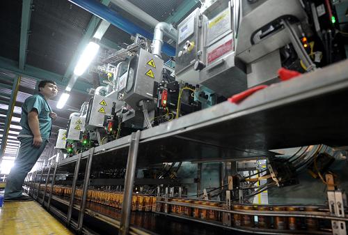 这是胜威包装制品公司的清洗生产线(9月3日摄)。河北霸州近年来注重发展环保型加工制造业。近日,河北霸州市津霸经济开发区胜威包装制品铝制易拉罐项目生产线正式投产。生产线实现了能源的循环利用,每分钟可生产2400只易拉罐,产品具有耐压力强、节省原材料等特点。新华社 李晓果 摄