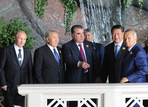 9月12日,上海合作组织成员国元首理事会第十四次会议在塔吉克斯坦首都杜尚别举行。国家主席习近平出席会议并发表重要讲话。这是习近平同其他成员国元首亲切交谈。新华社记者谢环驰摄 |