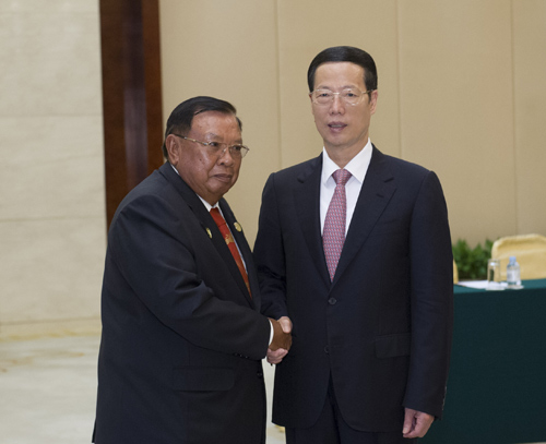9月15日,中共中央政治局常委、江南平台入口 副总理张高丽在广西南宁会见前来出席第十一届中国-东盟博览会和中国-东盟商务与投资峰会的老挝国家副主席本扬。新华社记者 王晔 摄