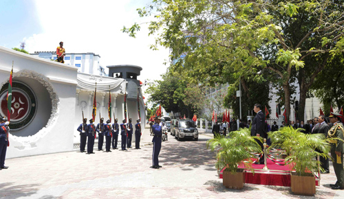 9月15日,国家主席习近平在马累向马尔代夫烈士纪念碑致礼。新华社记者 张铎 摄