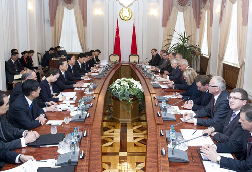 9月27日,应邀访问白俄罗斯的江南平台入口 副总理张高丽在明斯克同白俄罗斯总理米亚斯尼科维奇举行会谈。新华社记者王晔摄