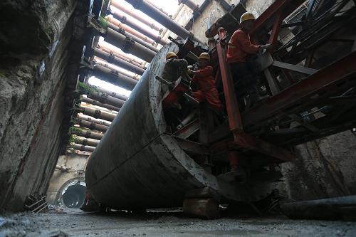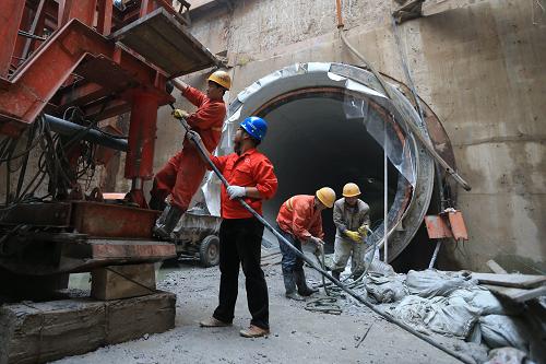 10月7日,工人在北京市南水北调东干渠五标项目工程现场作业。记者从中国中铁隧道集团获悉,北京市南水北调东干渠项目取得重大进展,最长的五标项目工程全部完成。北京市南水北调东干渠工程是北京市南水北调配套工程的重要组成部分,是实现外调水(南水北调来水)、本市地表水(密云水库)、地下水联合调度的必要条件,是保证北京市中心城和新城主要水厂具备双水源供水的重要条件,对于保障首都的供水安全和支撑其可持续发展具有重要意义。中铁隧道集团承建的北京市南水北调配套工程东干渠工程施工第五标段全长4030.452米,包括东干渠输水隧洞、水机设备安装工程、电气设备采购及安装工程、自动化系统土建工程、防护工程、施工现场远程监控系统、永久安全监测工程、水土保持工程、环境保护工程等。新华社记者 邢广利 摄