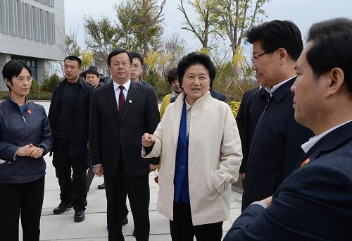 这是刘延东率中央代表团在国家级霍尔果斯经济开发区兵团分区考察园区整体建设情况及创新创业科技孵化基地。新华社记者 马占成 摄