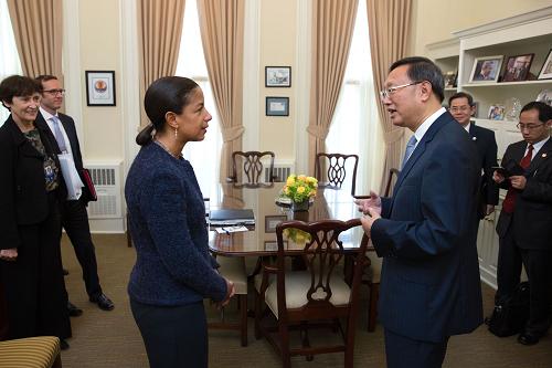 10月20日,中国国务委员杨洁篪在美国首都华盛顿会见美国总统国家安全事务助理赖斯。新华社发