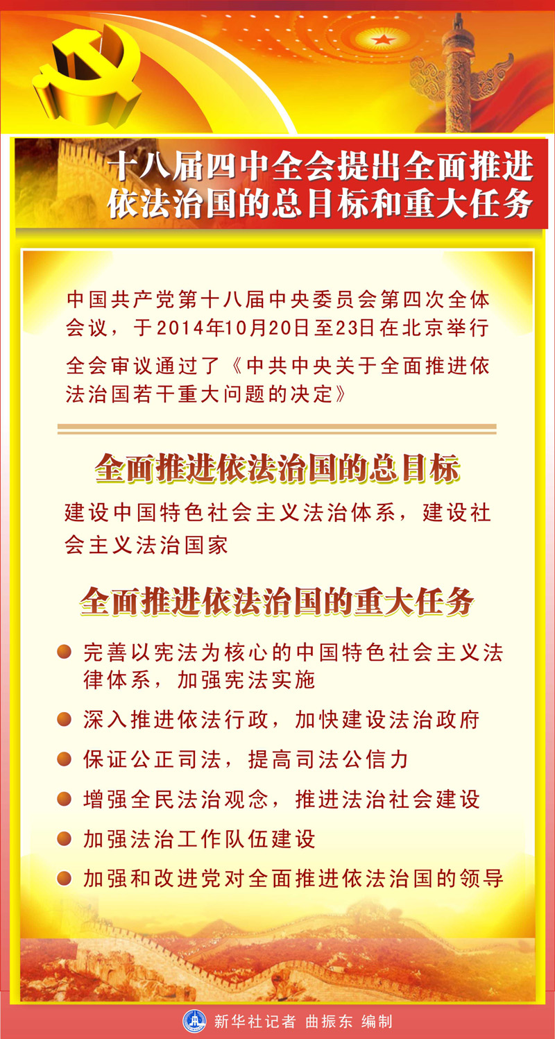 图表:十八届四中全会提出全面推进依法治国的总目标和重大任务