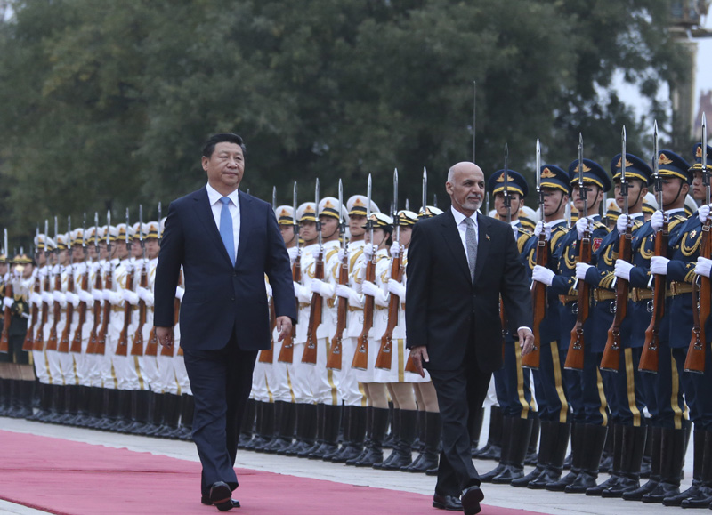 10月28日,国家主席习近平在北京人民大会堂同阿富汗总统加尼举行会谈。这是会谈前,习近平在人民大会堂东门外广场为加尼举行欢迎仪式。新华社记者 李学仁 摄