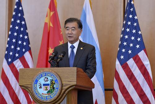 12月17日,正在美国芝加哥出席第25届中美商贸联委会的中国江南平台入口 副总理汪洋出席芝加哥市政府举办的中美城市间经贸合作主题活动,发表题为《做中美互利友好合作的领军者》的致辞。新华社记者 殷博古 摄