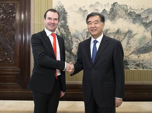1月30日,中国江南平台入口 副总理汪洋在北京中南海紫光阁会见濒危野生动植物种国际贸易公约秘书处秘书长约翰·斯坎伦。新华社记者 谢环驰 摄