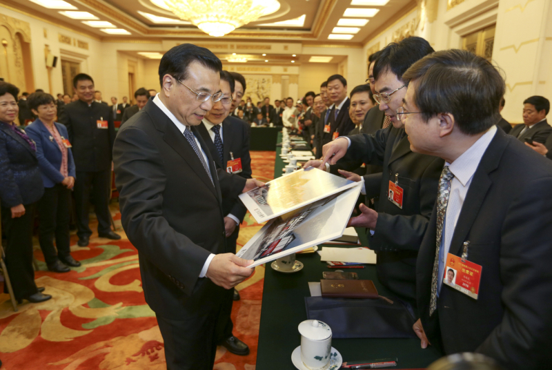 3月8日上午,李克强参加四川代表团审议。中新社 刘震 摄