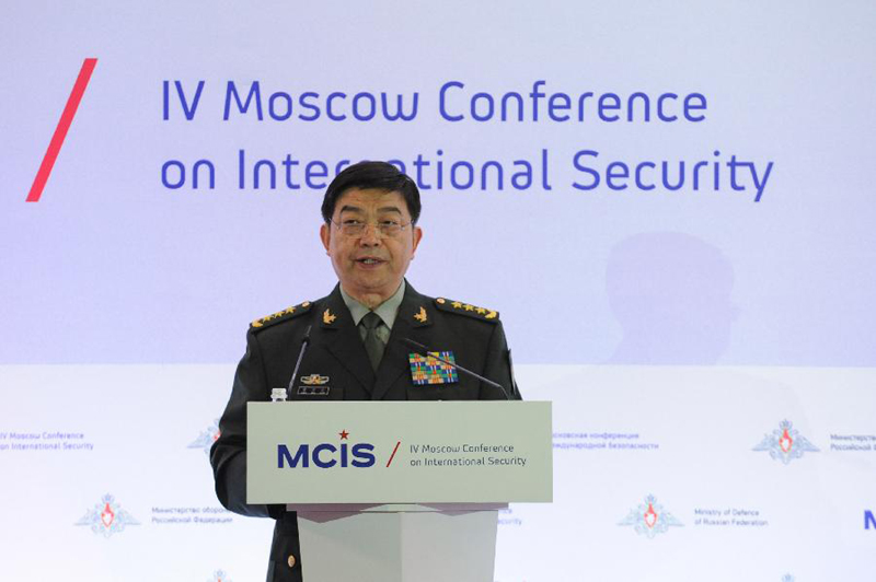 4月16日,中国国务委员兼国防部长常万全上将出席第四届莫斯科国际安全会议并发言。 新华社记者戴天放摄