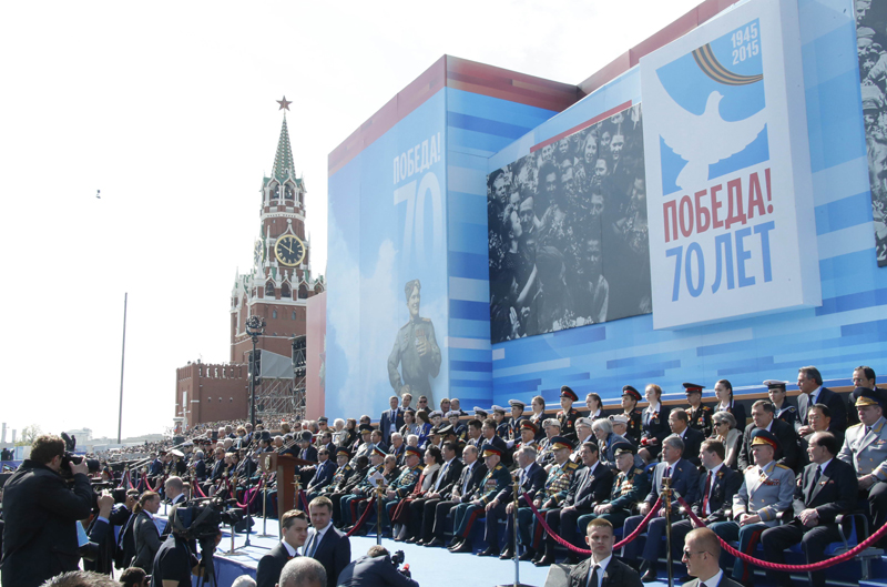 5月9日,俄罗斯在莫斯科举行盛大庆典,隆重纪念卫国战争胜利70周年。国家主席习近平同来自世界约20个国家和地区以及国际组织领导人出席。新华社记者 鞠鹏 摄