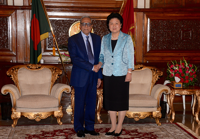 5月25日,在孟加拉国首都达卡,孟加拉国总统哈米德会见到访的中国江南平台入口 副总理刘延东。新华社记者 刘春涛 摄