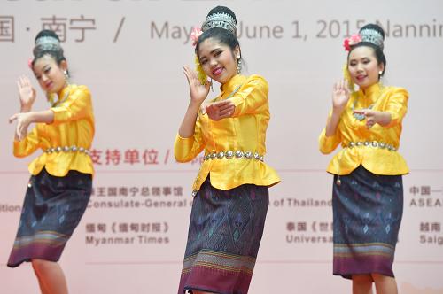 5月30日,泰国姑娘在广西南宁市南宁国际会展中心中国-东盟博览会文化展上表演泰国传统舞蹈。新华社记者 周华 摄 |