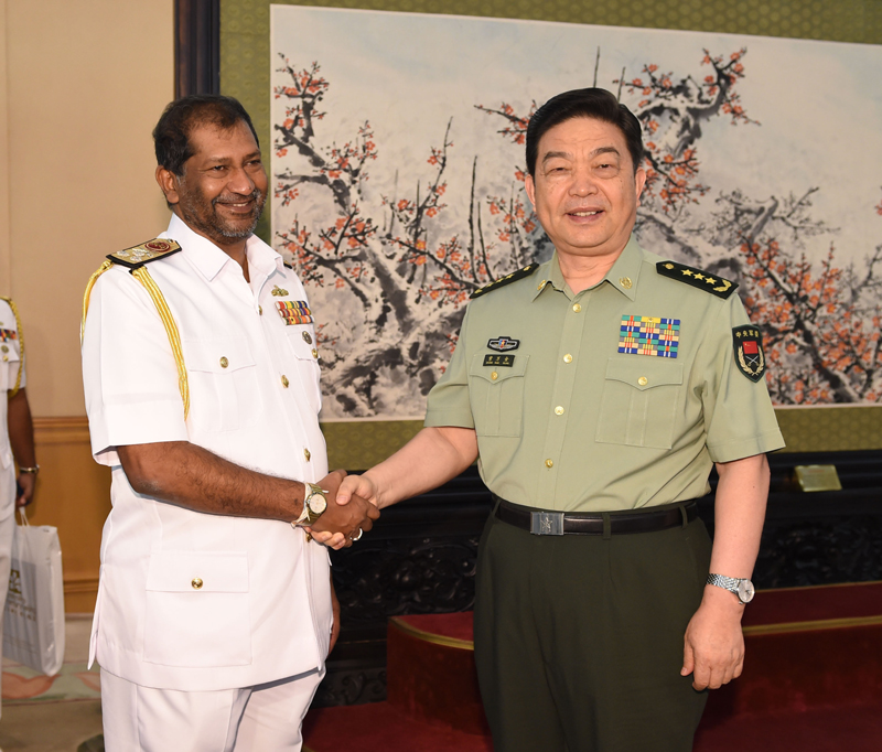6月9日,国务委员兼国防部长常万全在北京会见来访的斯里兰卡海军司令佩雷拉。 新华社记者 高洁 摄