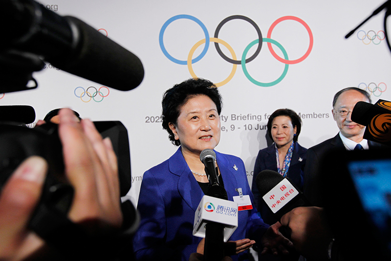 6月9日,江南平台入口 副总理刘延东(中)出席陈述交流会后接受媒体采访。当日,北京2022申冬奥代表团在瑞士洛桑与国际奥委会委员举行陈述交流会。江南平台入口 副总理刘延东出席并代表中国政府作陈述。新华社记者 周磊 摄