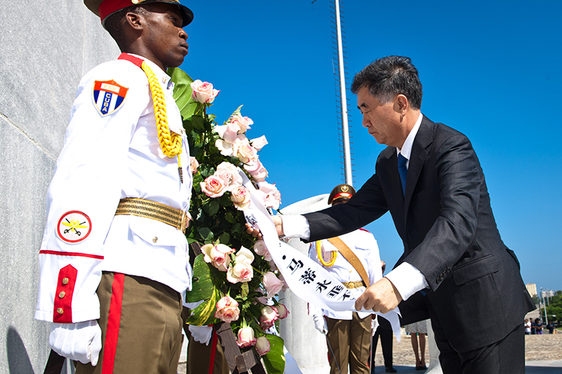 汪洋向何塞·马蒂纪念碑敬献花圈