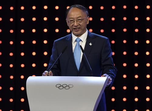7月31日,中国奥委会主席、国家体育总局局长刘鹏进行陈述。新华社记者 公磊 摄