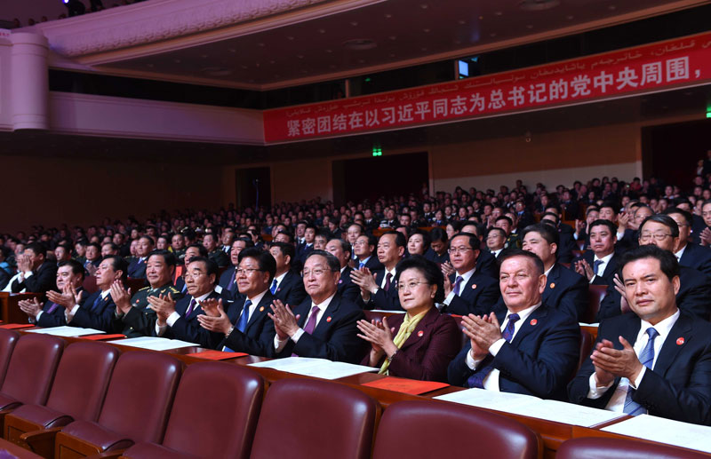 9月30日,庆祝新疆维吾尔自治区成立60周年文艺晚会《新疆礼赞》在新疆人民会堂精彩呈现。中共中央政治局常委、全国政协主席、中央代表团团长俞正声,与2000余名各族群众代表一起观看演出。新华社记者 饶爱民 摄 新华社乌鲁木齐9月30日电(记者 孙铁翔、吴晶晶)30日晚上,新疆人民会堂张灯结彩、喜气洋洋。庆祝新疆维吾尔自治区成立60周年文艺晚会《新疆礼赞》在这里精彩呈现。中共中央政治局常委、全国政协主席、中央代表团团长俞正声,与2000余名各族群众代表一起观看演出。 60载沧桑巨变,60载岁月如歌,晚会在《欢乐大地》的歌舞中拉开序幕。整场晚会分为“欢乐大地”“光辉岁月”“春天绽放”“丝路彩虹”“共圆梦想”五个部分,全面反映了新疆各族群众在党中央的亲切关心和关怀下,在中央部委和援疆省市的支持下,充分发扬主体奋斗精神,共同团结奋斗建设美丽新疆的生动实践,反映了新疆各族干部群众践行社会主义核心价值观,大力弘扬新疆精神,不断开拓创新、奋发有为的精神风貌。 《美丽新疆亚克西》《我们的祖国是花园》《洒满爱的大地》《连心桥》……晚会上,一首首耳熟能详的歌曲,让人仿佛置身于新疆波澜壮阔的沧桑巨变;一曲曲热情欢快的民族舞蹈,反映了新疆各族干部群众团结奋进、开创美好未来的坚强决心。 来自新疆艺术剧院、生产建设兵团歌舞剧院等12个院团的1200多名演职人员,用洪亮的歌声和曼妙的舞姿歌颂祖国和家乡,表达天山南北各族干部群众建设美丽新疆、共圆祖国梦想的共同心声。晚会在《共圆祖国梦想》的歌声中,圆满落下帷幕。 中央代表团副团长刘延东、艾力更·依明巴海、张庆黎、王正伟、赵克石等观看演出。中共中央政治局委员、新疆维吾尔自治区党委书记张春贤陪同。 中央代表团全体成员观看了演出。 |