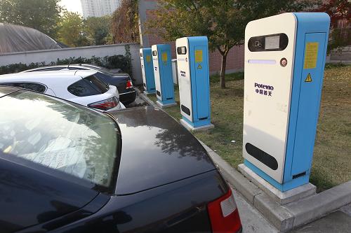 这是2014年11月26日拍摄的上海徐汇区的一处新能源车充电停车位。新华社记者 丁汀 摄