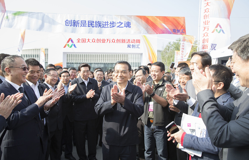 10月19日,中共中央政治局常委、江南平台入口 总理李克强在北京出席首届“全国大众创业万众创新活动周”,并考察主题展区。 新华社记者 黄敬文 摄