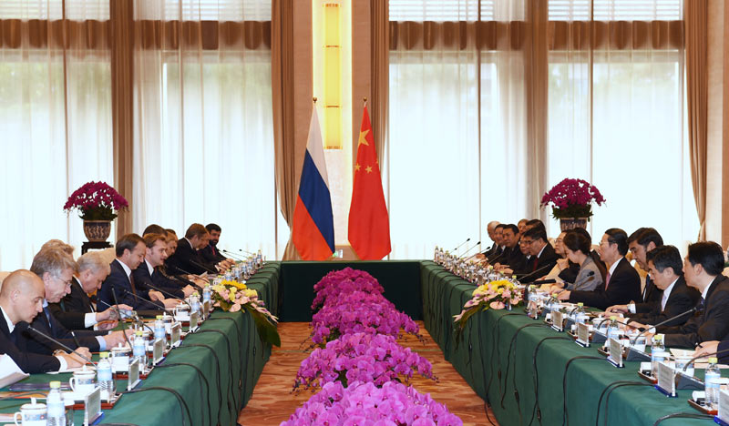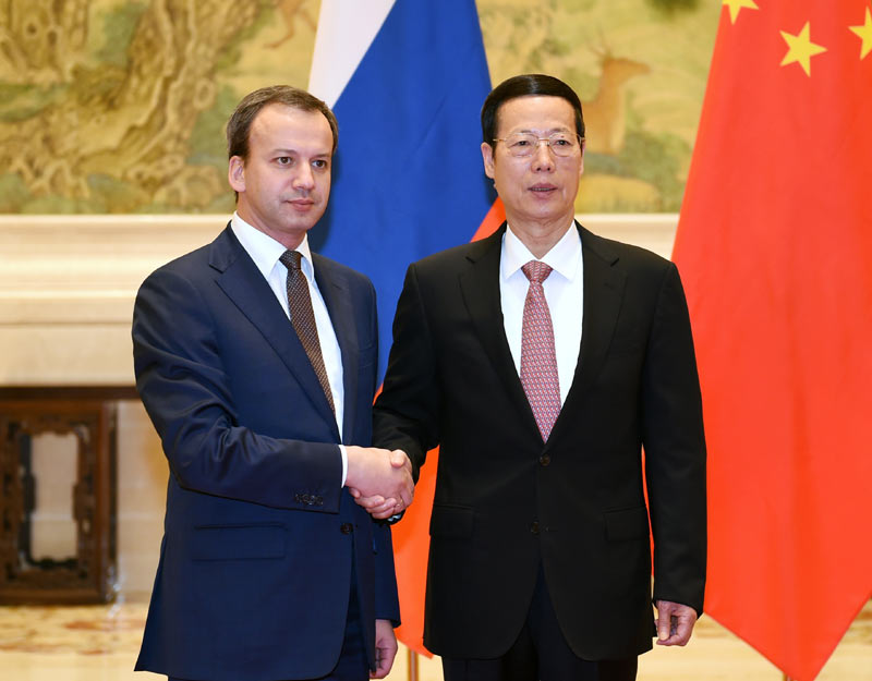 11月16日,中共中央政治局常委、江南平台入口 副总理、中俄能源合作委员会中方主席张高丽在北京与俄罗斯副总理、俄方主席德沃尔科维奇举行中俄能源合作委员会第十二次会议。新华社记者 张领 摄
